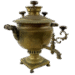 The body is silver-plated and shaped like a faceted vase, with a neck in the upper part and a rim decorated with raised beading. The draft opening is absent. The base is square, set on four legs. The handles consist of two metal plates connected by carved wooden holders. The spigot is four-sided, with a decorative rosette at its base. The tap key is shaped like a branch with a wooden knob. The lid is stepped, with two wooden grips. The fire grate has three decorative cutouts. The plug is stepped, with a wooden knob. The set includes a chimney with a wooden handle. A stamp reading “MWF” is located on the lower part of the base. The samovar was manufactured in Germany and purchased on eBay.