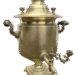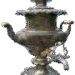 The samovar is known as “Skifon.” The body is shaped like a goblet, widening toward the top. The base is square, supported by four flattened ball-shaped legs. The draft opening, which transitions into the body, features decorative cutouts. The spigot ends with a curled tip; a rosette was not provided. The tap key is stylized in form. The handles hang on swivels and are connected by wooden grips. The lid is flat, with a thickened upper section and wooden handles. The fire grate is missing. The plug is spherical, fitted with a copper handle. On the lid is an engraving made with a graver: «Тула Иванъ и Назаръ Лисицыны». On the bottom of the plug is the stamp: «ЕП». The samovar was acquired from the collector Mark in San Francisco in 2023.