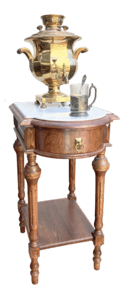 2014 USA, California. Samovar table. White Oak, marble, brass, wood stain, lacquer. H 78 cm W 40 cm L 58cm.