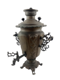 By the early 20th century, the factory had grown significantly, producing around 100 different samovar designs, with capacities ranging from 2 to 80 liters — including travel collapsible samovars, shop models, kitchen samovars, and even alcohol-fueled types. By 1912, the factory employed about 98 people, and the annual production reached approximately 60,000 samovars.